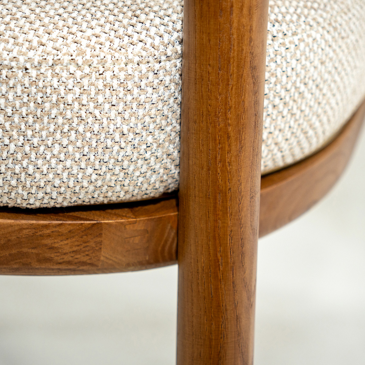 Almo Natur stolica sa prirodnim drvenim ramom, mekanim tapaciranim sedištem i zaobljenom formom unosi toplinu, udobnost i elegantan karakter u savremene enterijere.