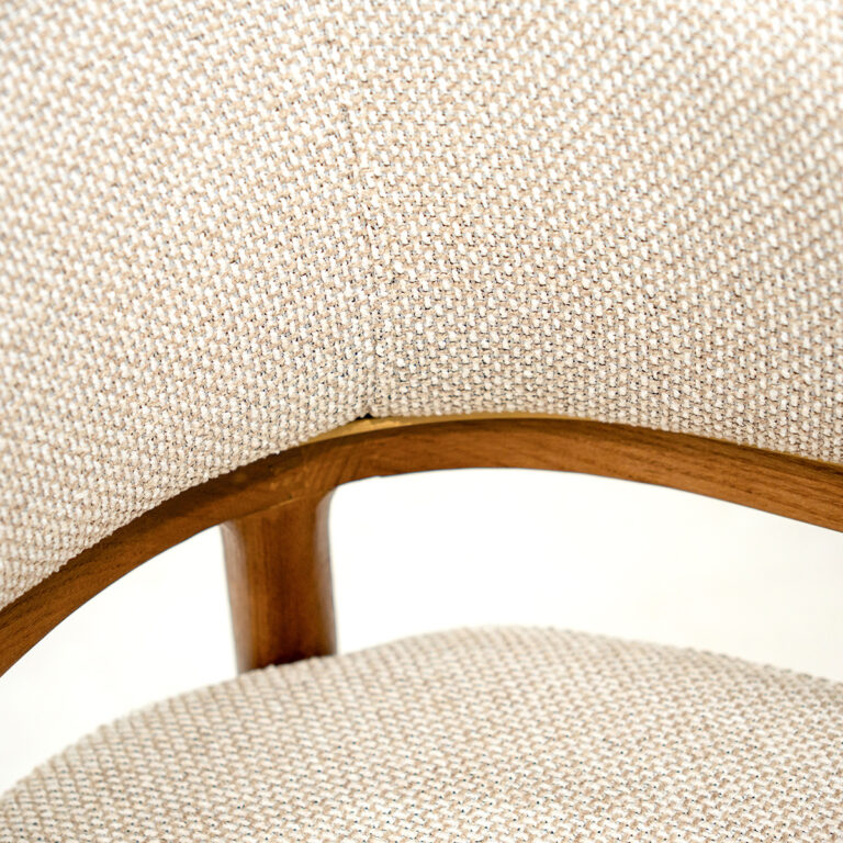 Almo Natur stolica spaja prirodnu estetiku, udobnost i prefinjen dizajn u skladnu celinu. Njen svetliji drveni ram naglašava toplinu materijala, dok zaobljena forma naslona i rukonaslona doprinosi prijatnijem osećaju pri sedenju. Tapacirano sedište i naslon u svetlim neutralnim tonovima dodatno omekšavaju izgled stolice i čine je vizuelno laganom, ali upečatljivom.