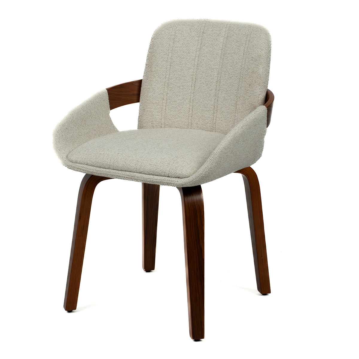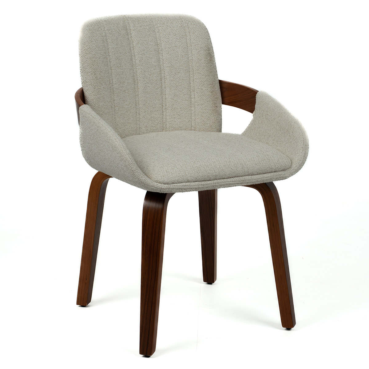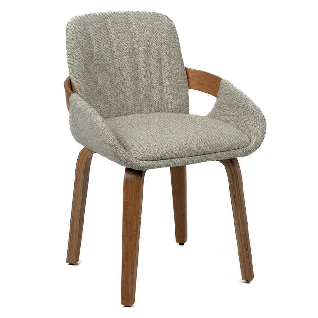 Kibi stolica sa tamnijim drvetom i toplom bež tkaninom unosi mir i profinjen karakter u savremene enterijere.