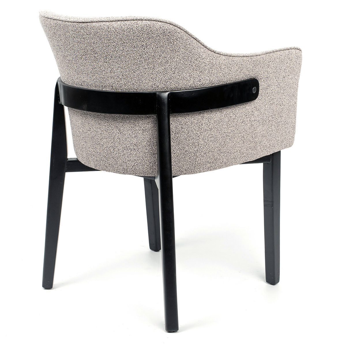Stolica Lorent kombinuje udobnost i sofisticirani dizajn, sa nežno zakrivljenim naslonom i tapaciranim sedištem od meke tkanine u boji peska. Njena elegantna forma unosi profinjenost u svaki prostor, bilo da je u pitanju kancelarija, dnevni boravak ili trpezarija.