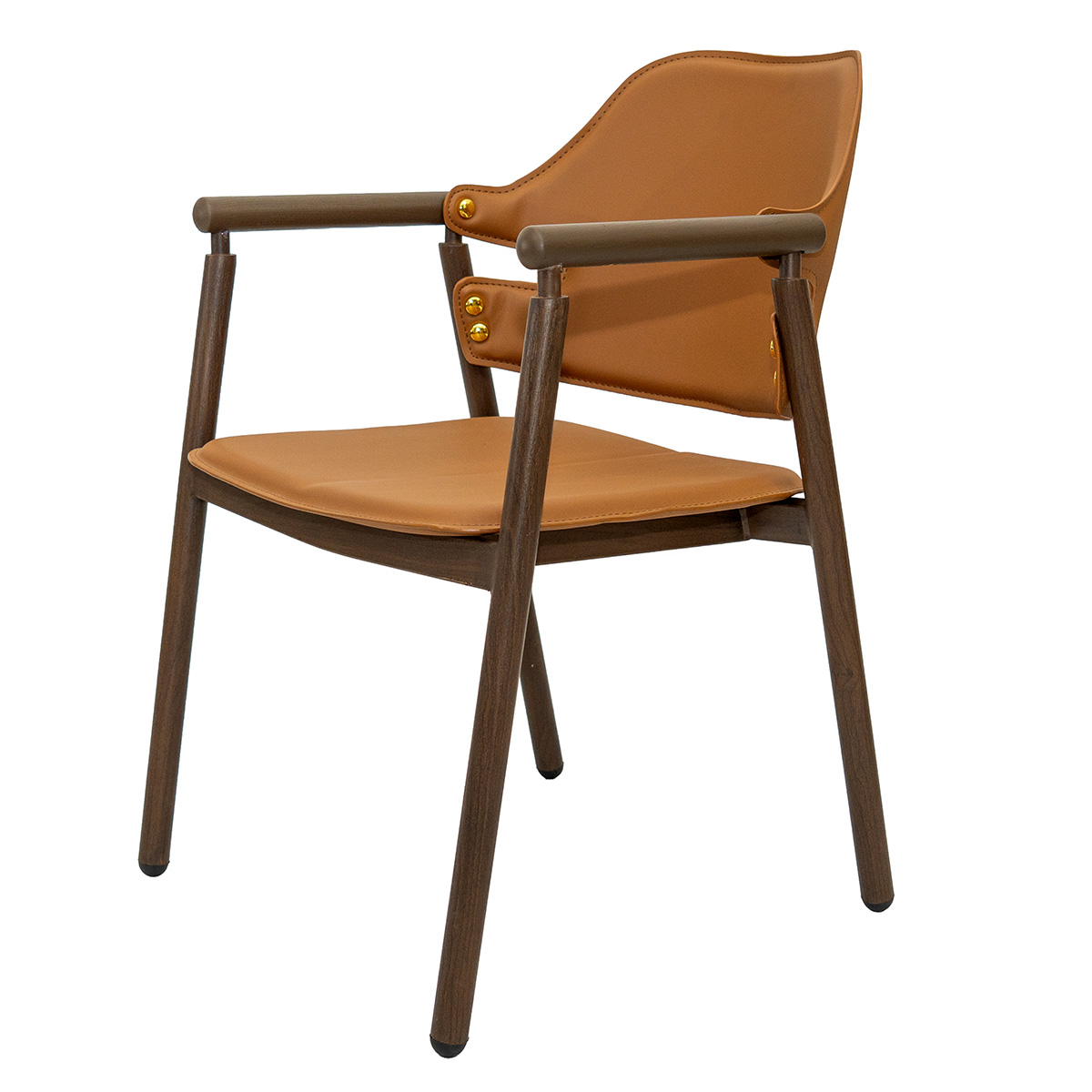 Vibo stolica osmišljena je da razbije statiku prostora i unese novu energiju. Njene linije podsećaju na pokret, dok kombinacija toplih braon tonova i metalnih detalja stvara savremen, a opet retro-industrijski karakter. Tapacirano sedište i naslon obezbeđuju udobnost, dok čvrsta konstrukcija garantuje trajnost i stabilnost.