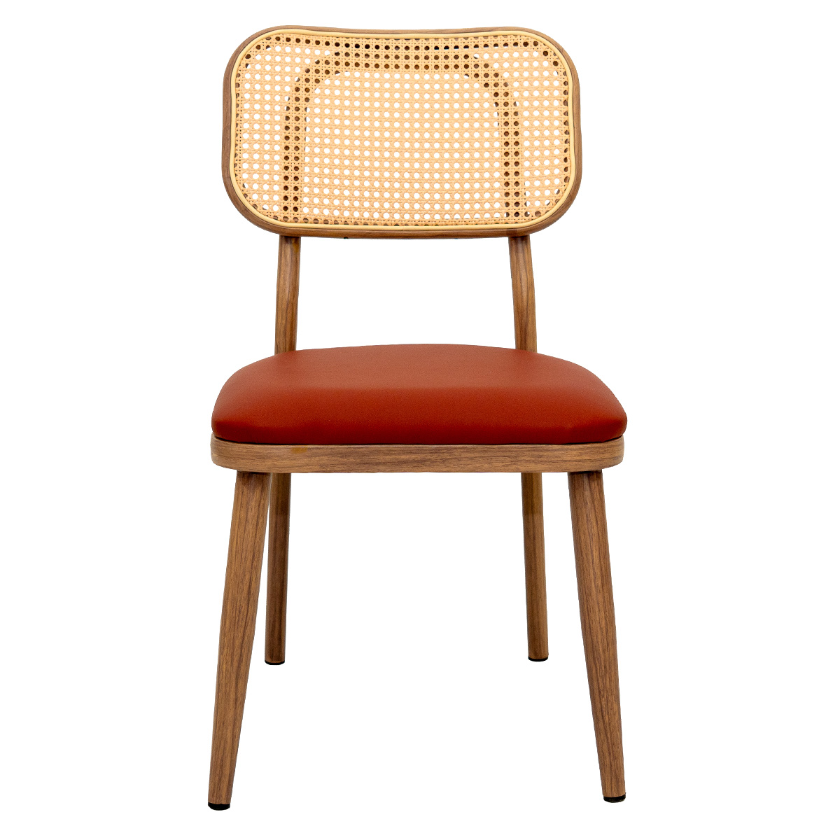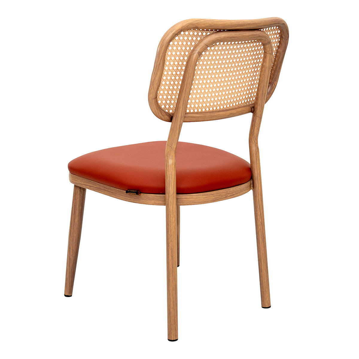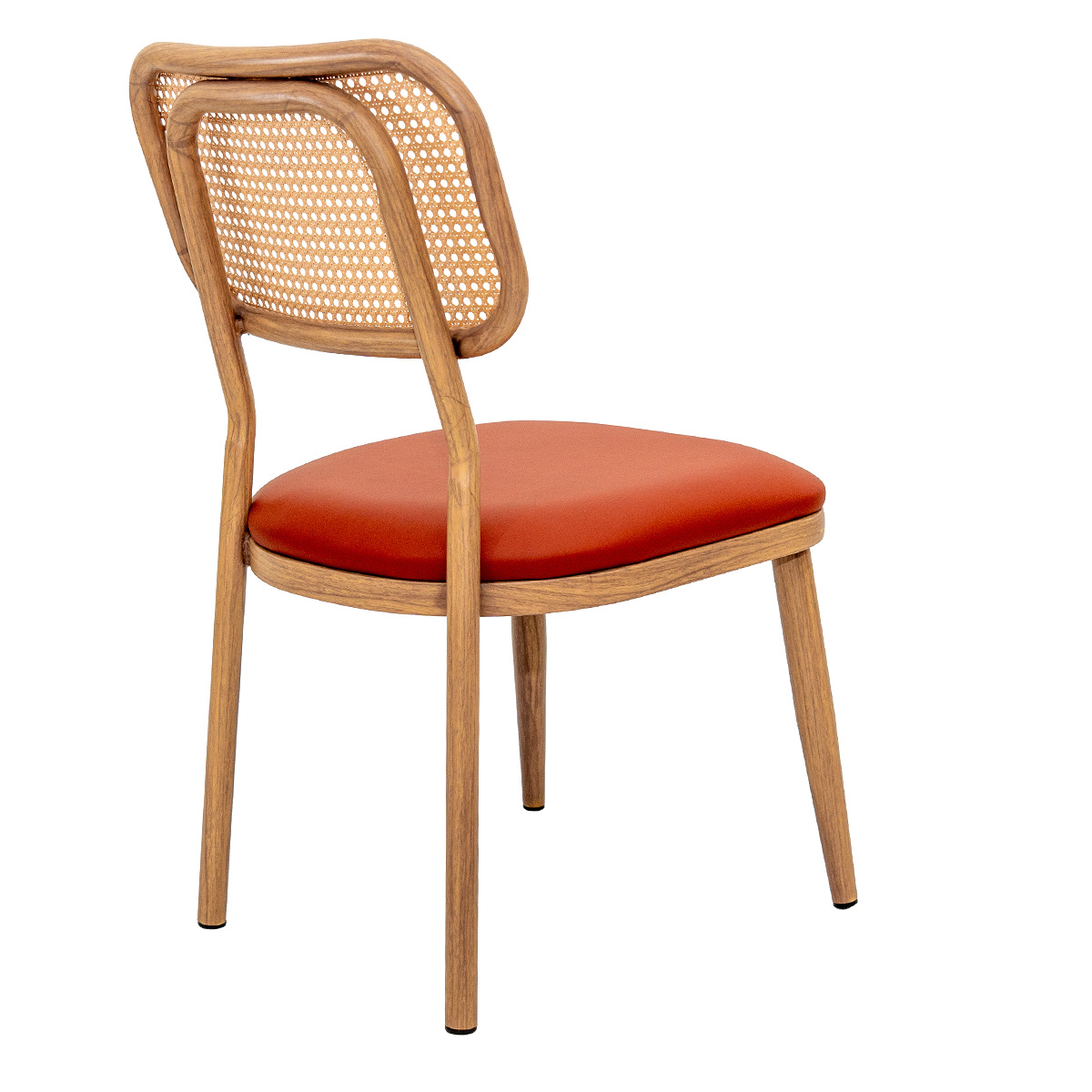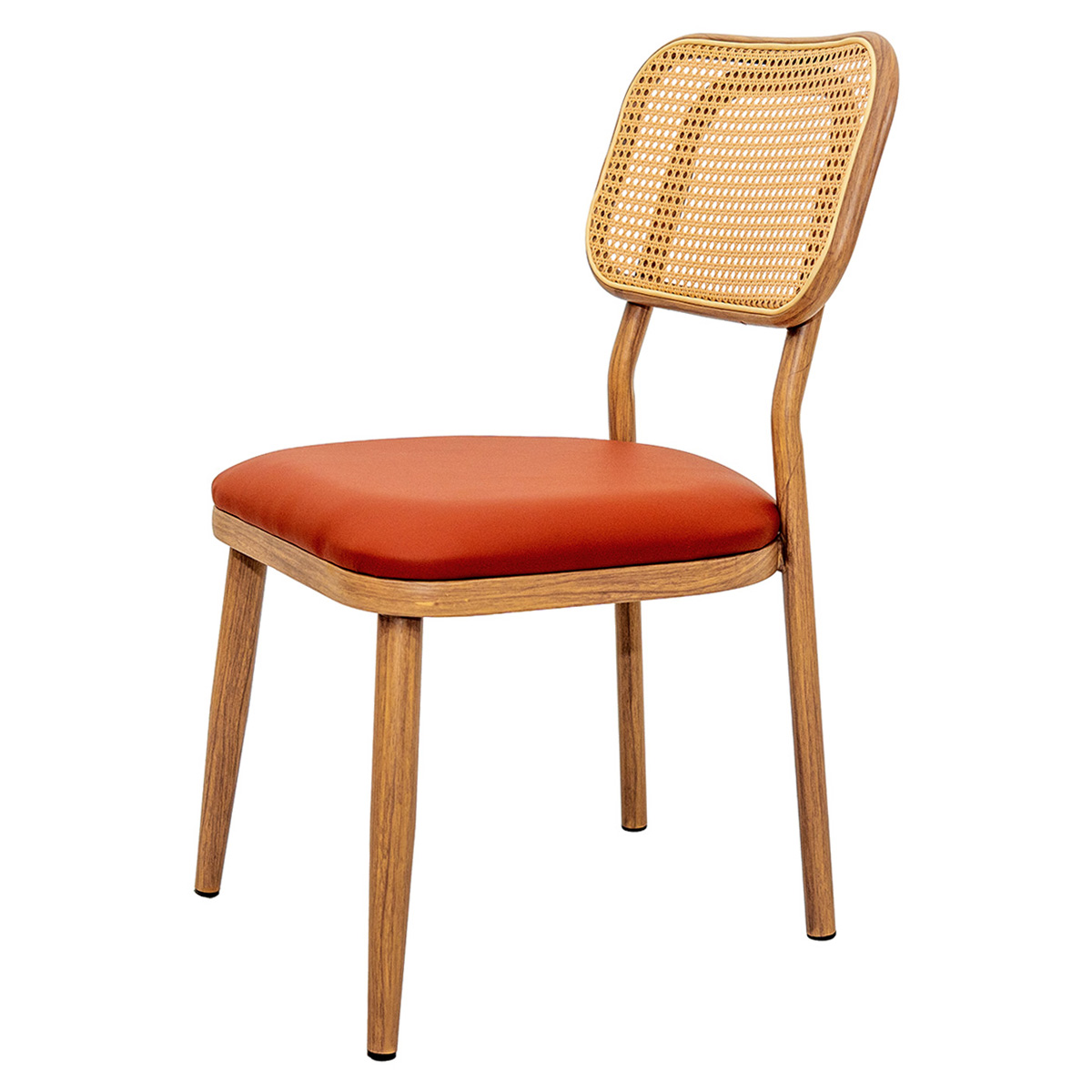 Nesty metalna stolica sa tankom konstrukcijom i sedištem u svetlocrvenim tonovima donosi lakoću i eleganciju u moderne enterijere i eksterijere.