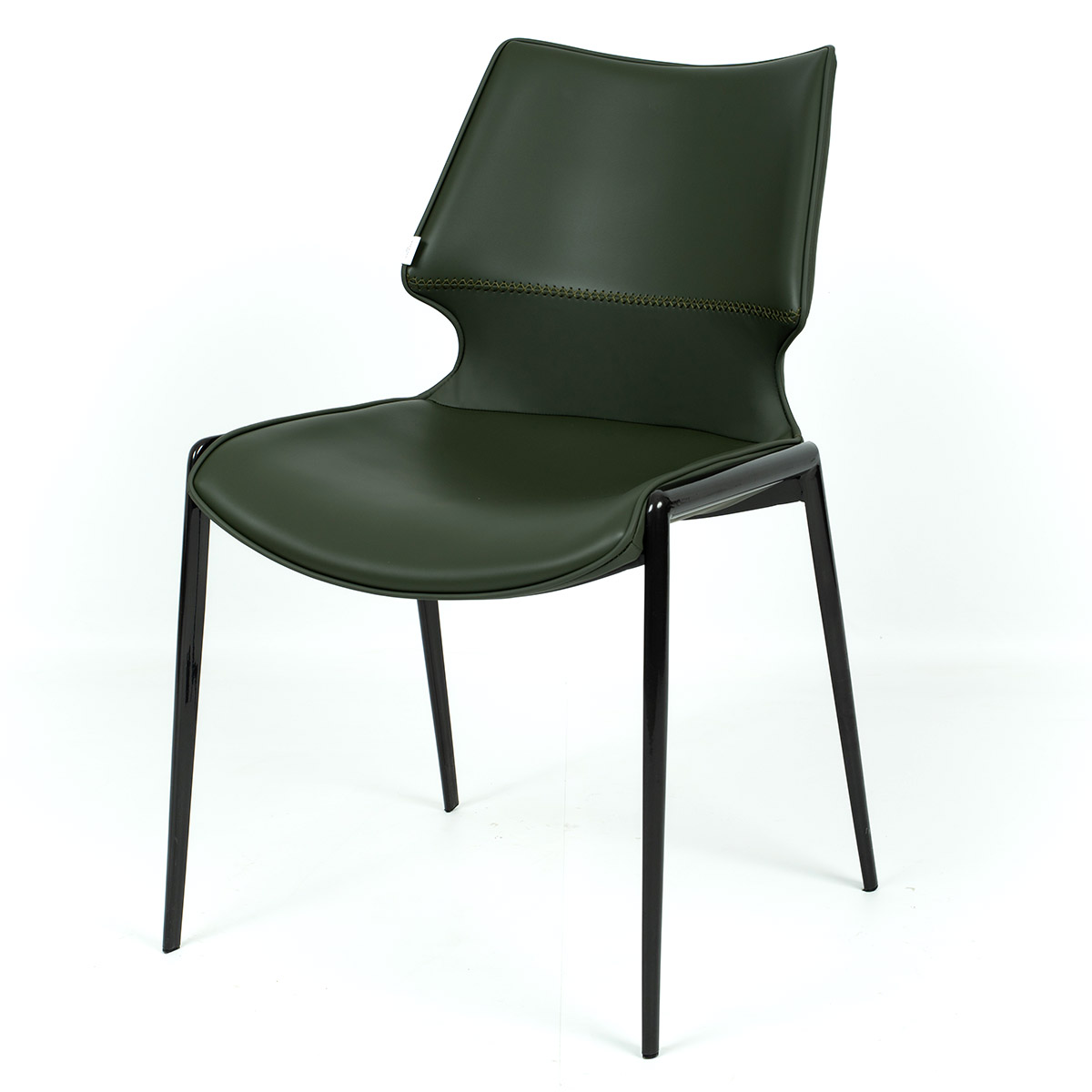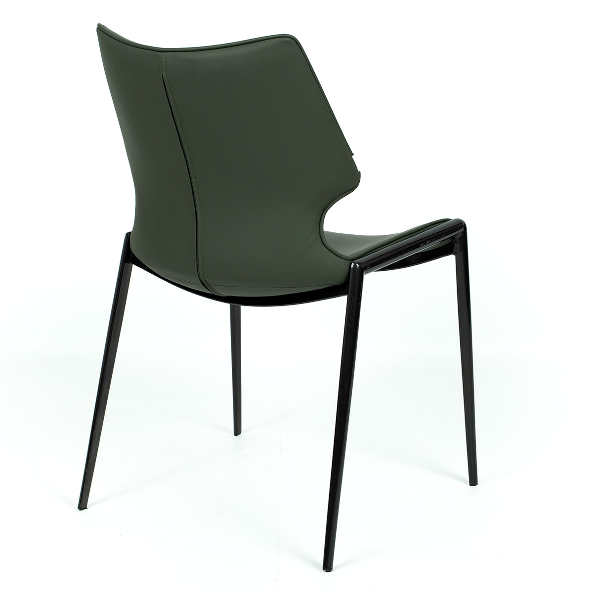Qubo stolica kombinuje savremeni dizajn i praktičnu upotrebu. Sedište i naslon obloženi su kvalitetnom veštačkom kožom u elegantnoj maslinasto zelenoj boji, što prostoru daje prepoznatljiv i moderan akcenat. Ergonomski oblik omogućava udobno sedenje, dok čelični ram i nogice pružaju stabilnost i dugotrajnost.
